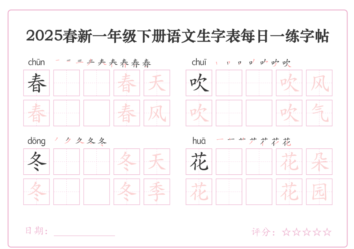 小学语文《写字表字帖》1-6下册(25春)