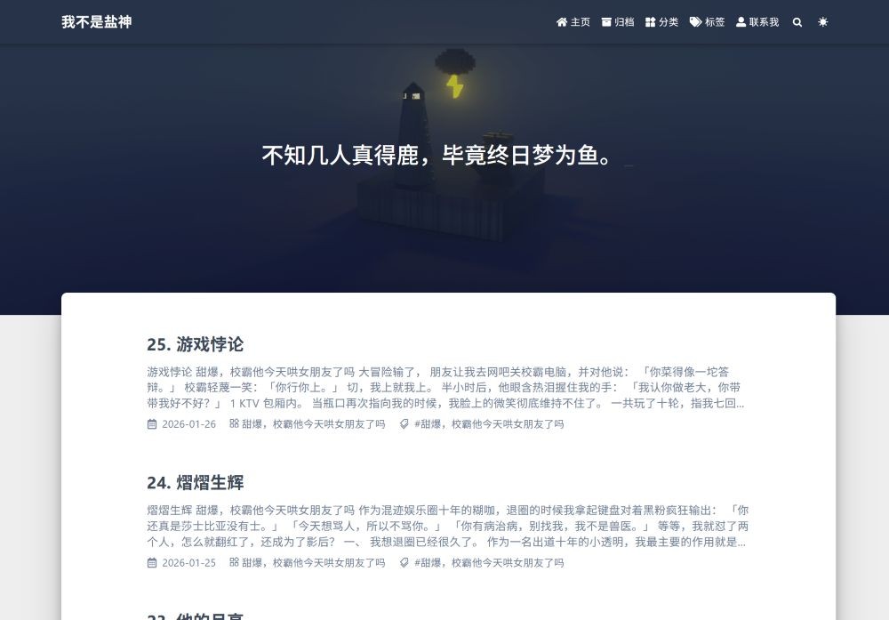 我不是盐神是一个专注于知乎盐选(Zhihu Salt Selection)高价值内容的深度搬运与共享平台。在知识付费浪潮汹涌、信息碎片化严重的今天,该站以“无门槛、零成本、高纯净”为核心逻辑,将原本锁在付费墙后的优质专栏、严谨科普与硬核虚构文学转化为大众触手可及的文字资源。它不仅是一个内容镜像站,更是一个让优质文字回归“自由流通”属性的数字档案馆。